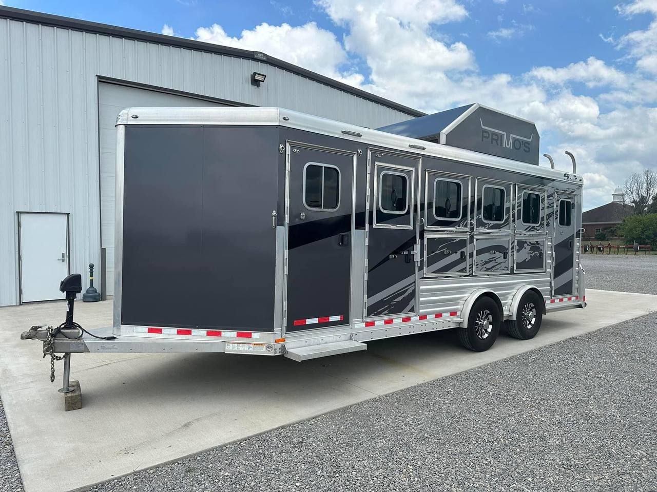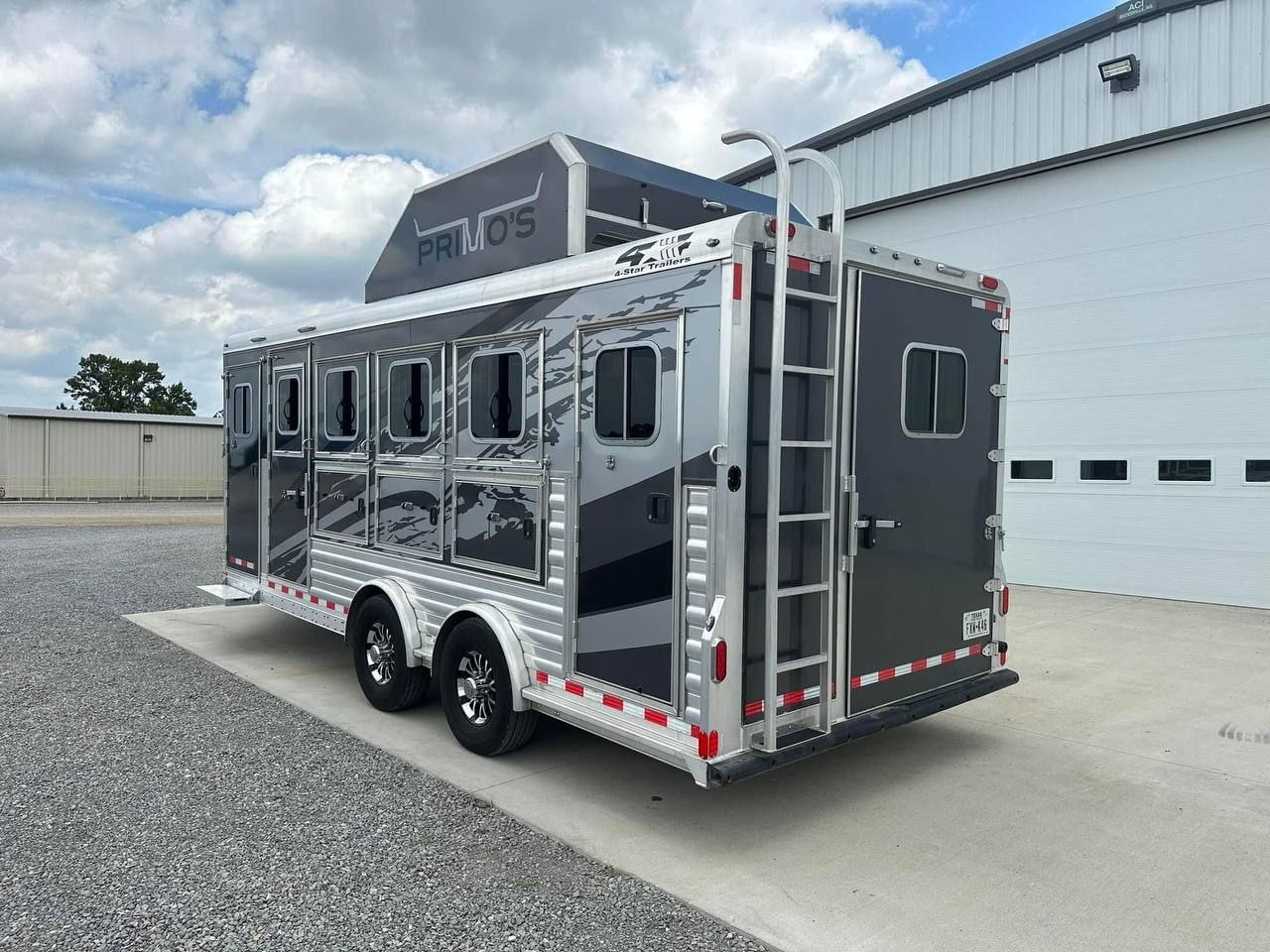 The 2020 4-Star 4 Horse Bumper Pull Trailer combines premium craftsmanship with equestrian-focused design. Built with all-aluminum construction, it resists rust while remaining lightweight for easier towing. Measuring approximately 7’ wide, 7’ tall, and 20’ long, it provides spacious stalls for four horses while maintaining a manageable bumper-pull footprint.