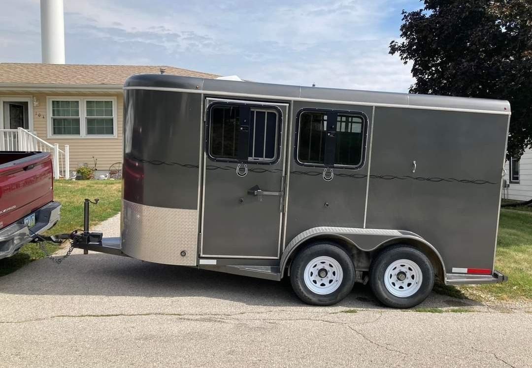 Standard features include electric brakes, interior lighting, and LED exterior lights for enhanced safety. An aluminum tread plate protects against gravel and road wear, while the undercoating shields against rust. Dimensions typically measure 6’8” wide, 7’ tall, and 14’ long, offering ample room for two horses.